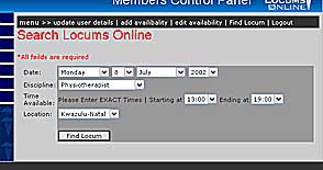 region using the "Find Locum" option in the Members
